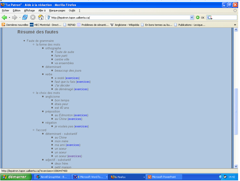 - Enfin, on obtient une liste de nos erreurs les plus fréquentes ainsi que des suggestions d’exercices de perfectionnement quand c’est possible.