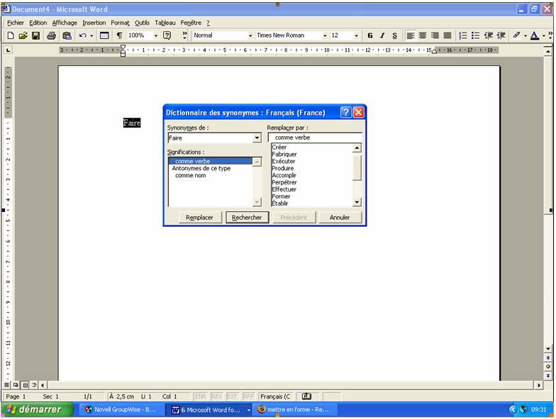 Par exemple, si je tape le verbe FAIRE, j’obtiens tous ces synonymes :